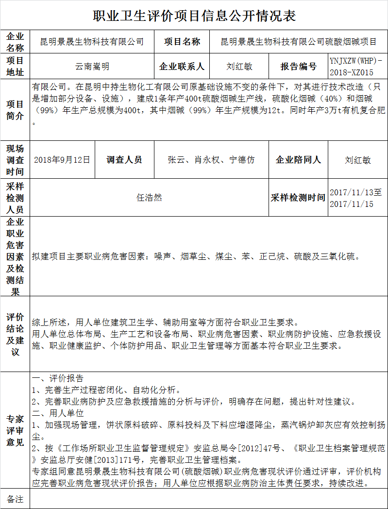 18-職業衛生(shēng)評價項目信息公開情況表-YNJXZW(WHP)-2018-XZ015