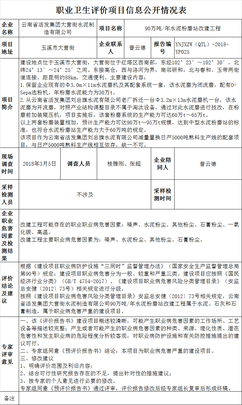 18-職業衛生(shēng)評價項目信息公開情況表YNJXZW(QTL)-2018-YP025