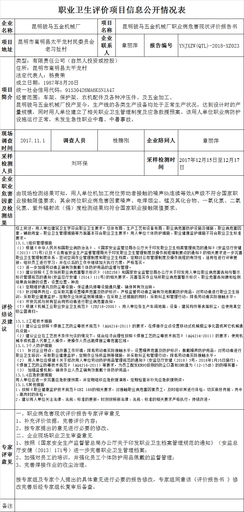 18-職業衛生(shēng)評價項目信息公開情況表-YNJXZW(QTL)-2018-XZ023