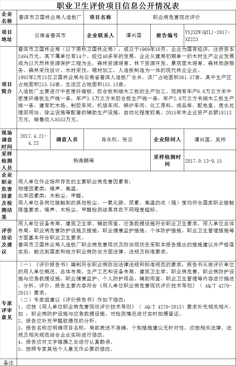 18-職業衛生(shēng)評價項目信息公開情況表YNJXZW(QTL)-2017-XZ223