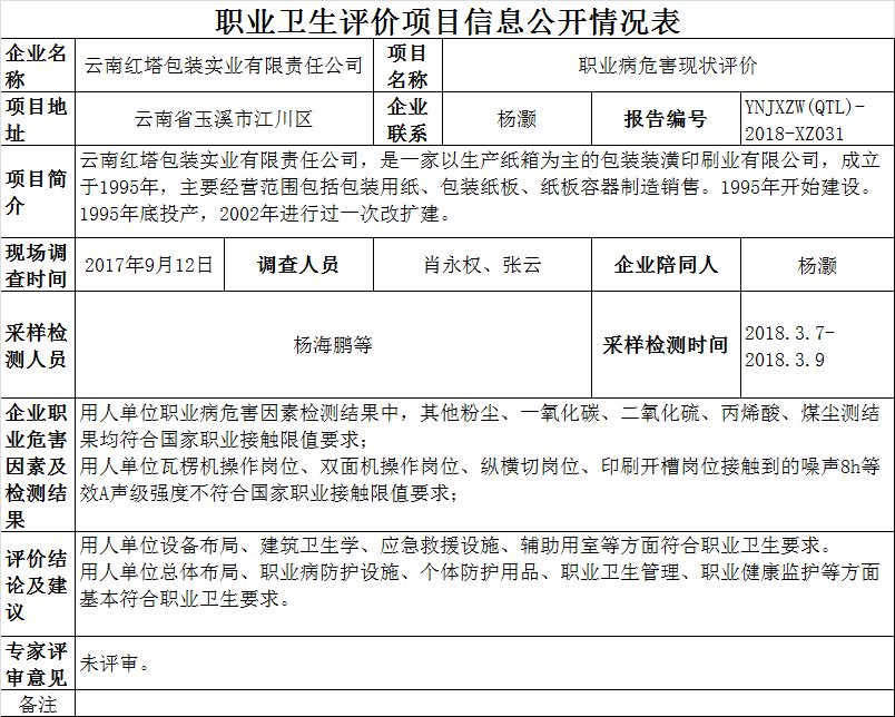 18-職業衛生(shēng)評價項目信息公開情況表-YNJXZW(QTL)-2018-XZ031