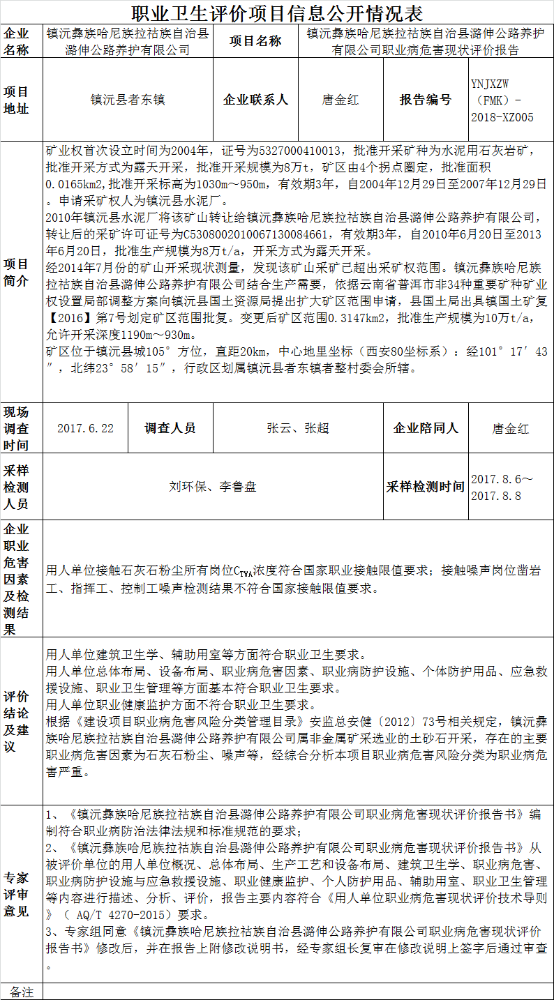 18-職業衛生(shēng)評價項目信息公開情況表YNJXZW(FMK)-2018-XZ005