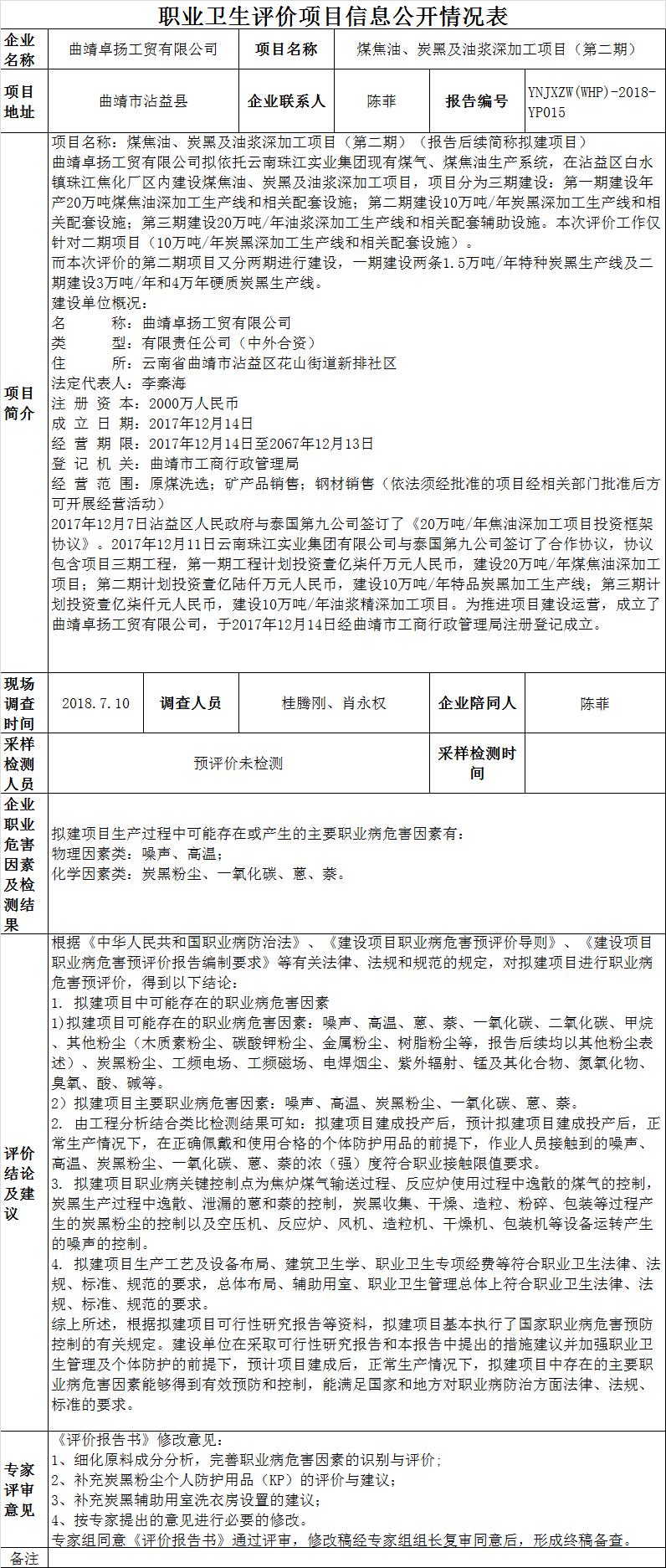 18-職業衛生(shēng)評價項目信息公開情況表YNJXZW(WHP)-2018-YP015