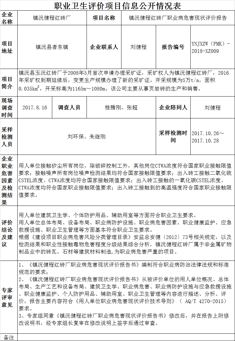 18-職業衛生(shēng)評價項目信息公開情況表YNJXZW(FMK)-2018-XZ009