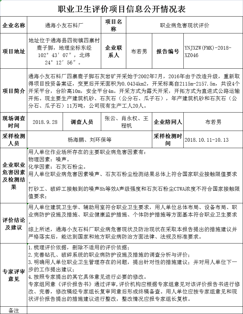 18-職業衛生(shēng)評價項目信息公開情況表-YNJXZW(FMK)-2018-XZ046