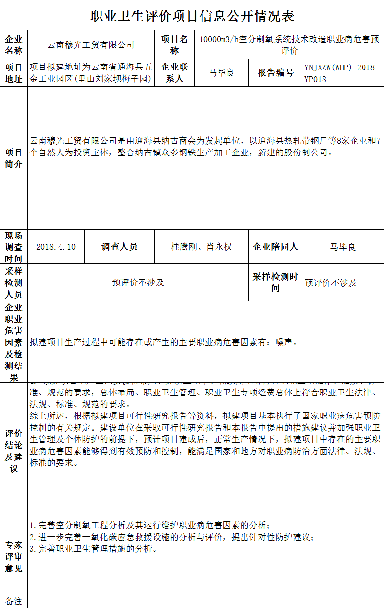18-職業衛生(shēng)評價項目信息公開情況表YNJXZW(WHP)-2018-YP018