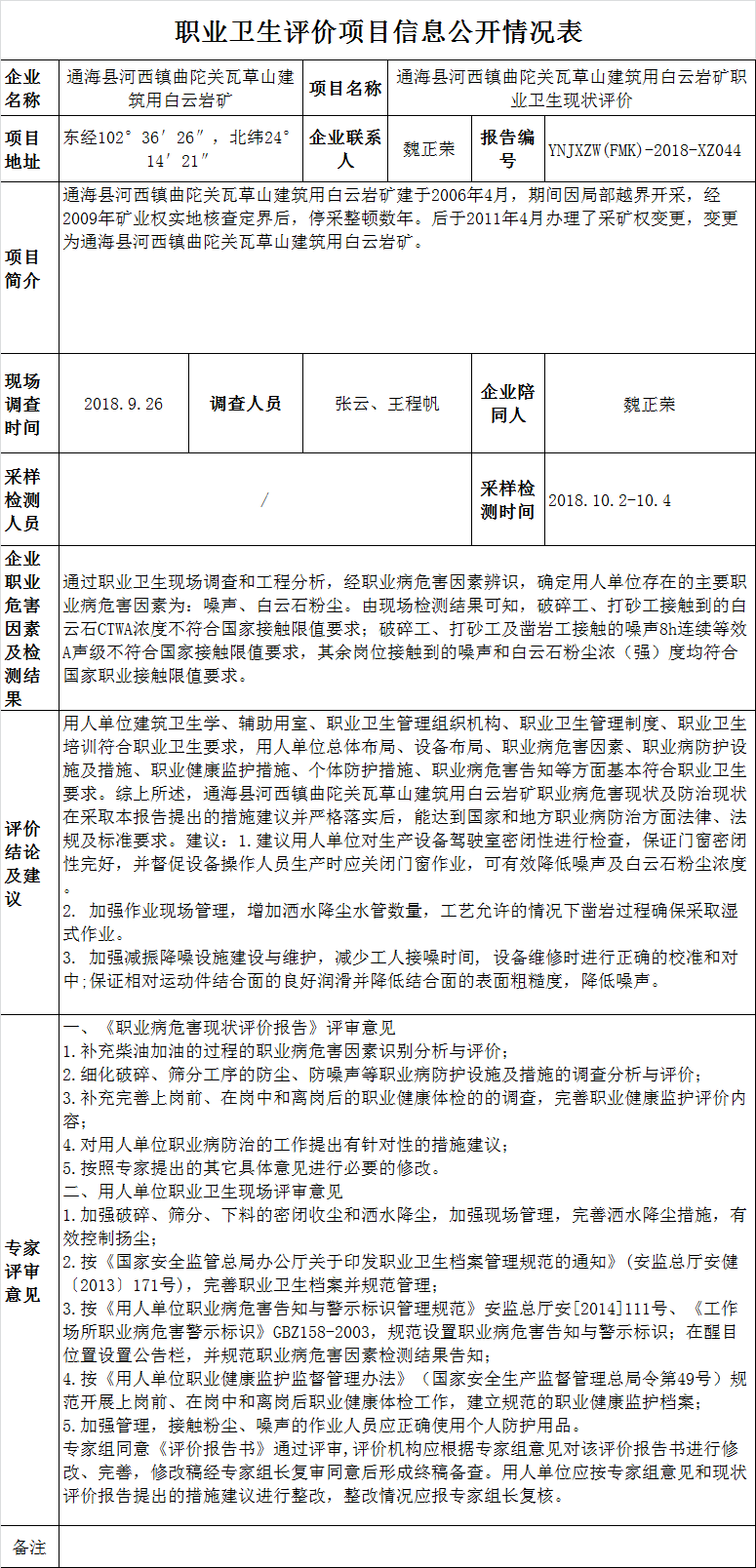 18-職業衛生(shēng)評價項目信息公開情況表YNJXZW(FMK)-2018-XZ044