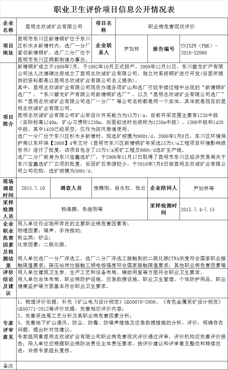 18-職業衛生(shēng)評價項目信息公開情況表YNJXZW(FMK)-2018-XZ060