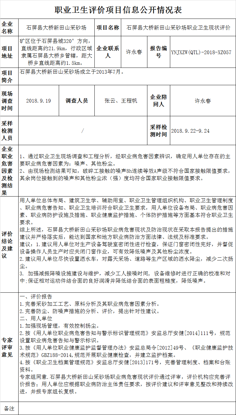 18-職業衛生(shēng)評價項目信息公開情況表YNJXZW(FMK)-2018-XZ057