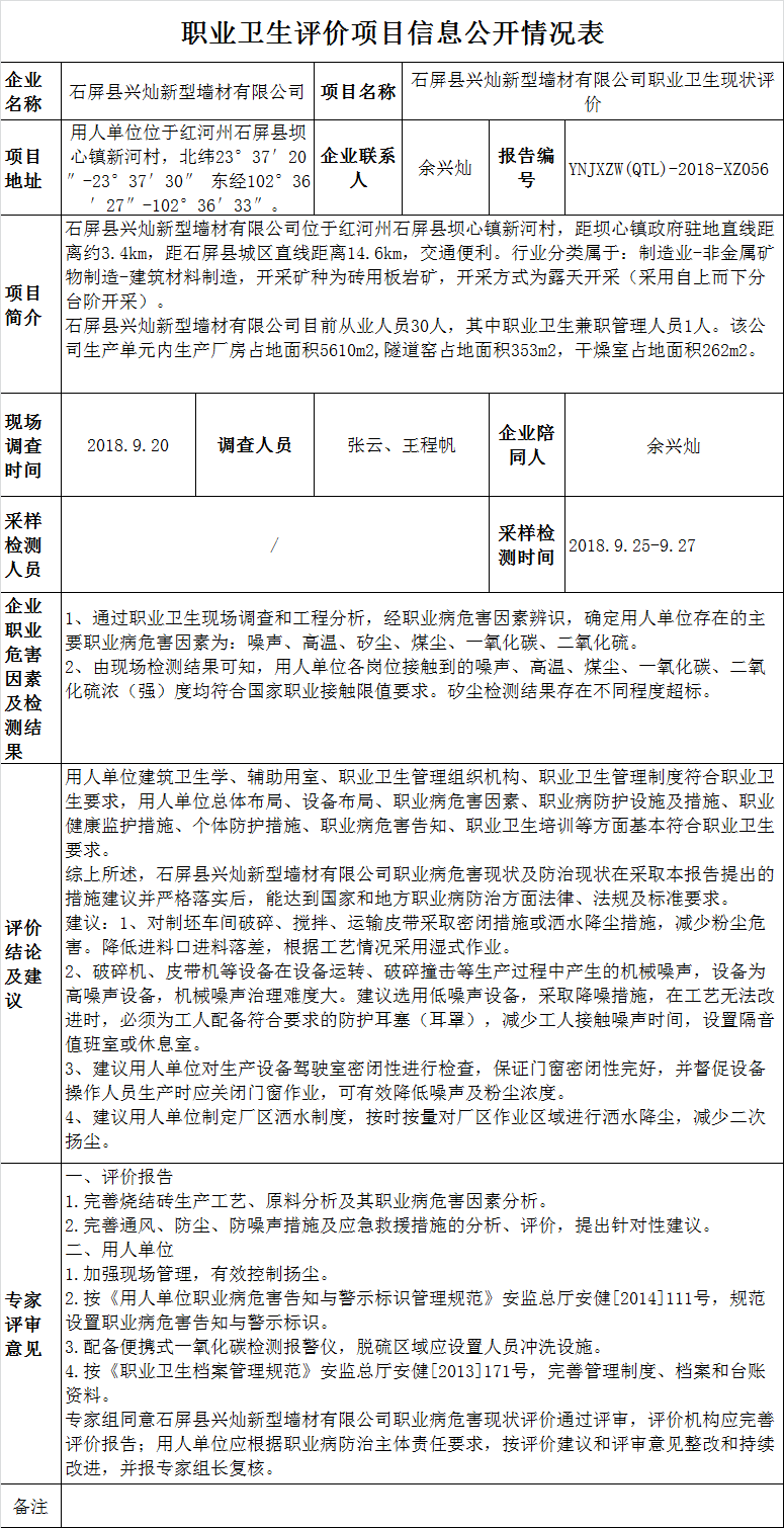 18-職業衛生(shēng)評價項目信息公開情況表YNJXZW(QTL)-2018-XZ056