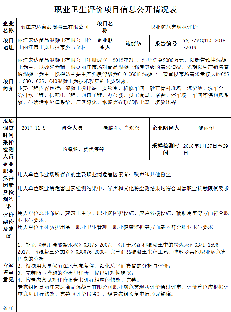 18-職業衛生(shēng)評價項目信息公開情況表YNJXZW(QTL)-2018-XZ019