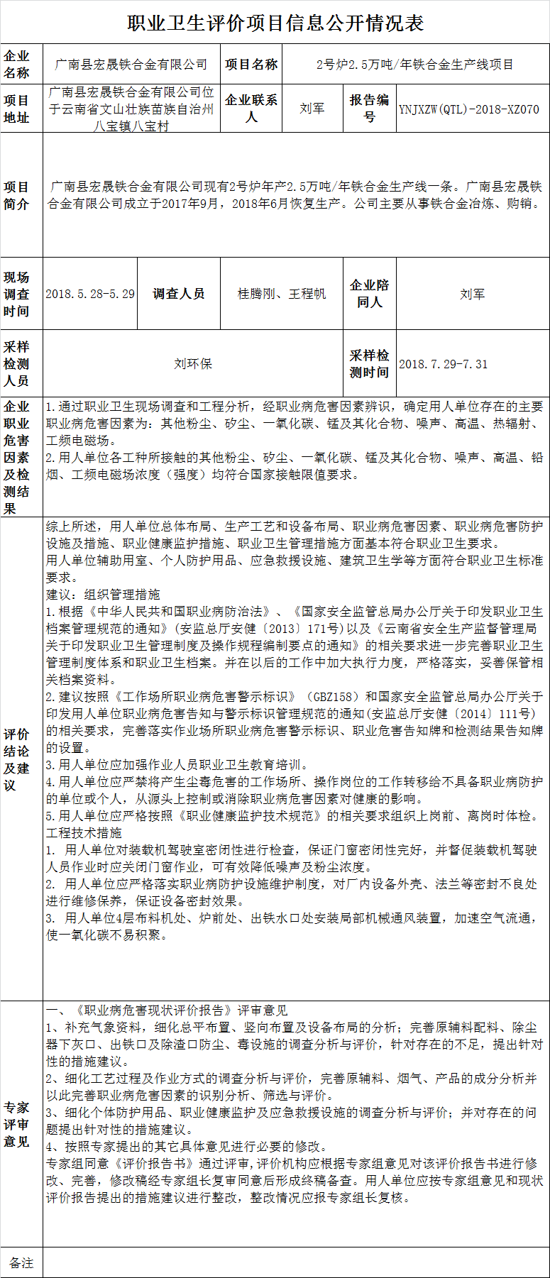 18-職業衛生(shēng)評價項目信息公開情況表YNJXZW(QTL)-2018-XZ070