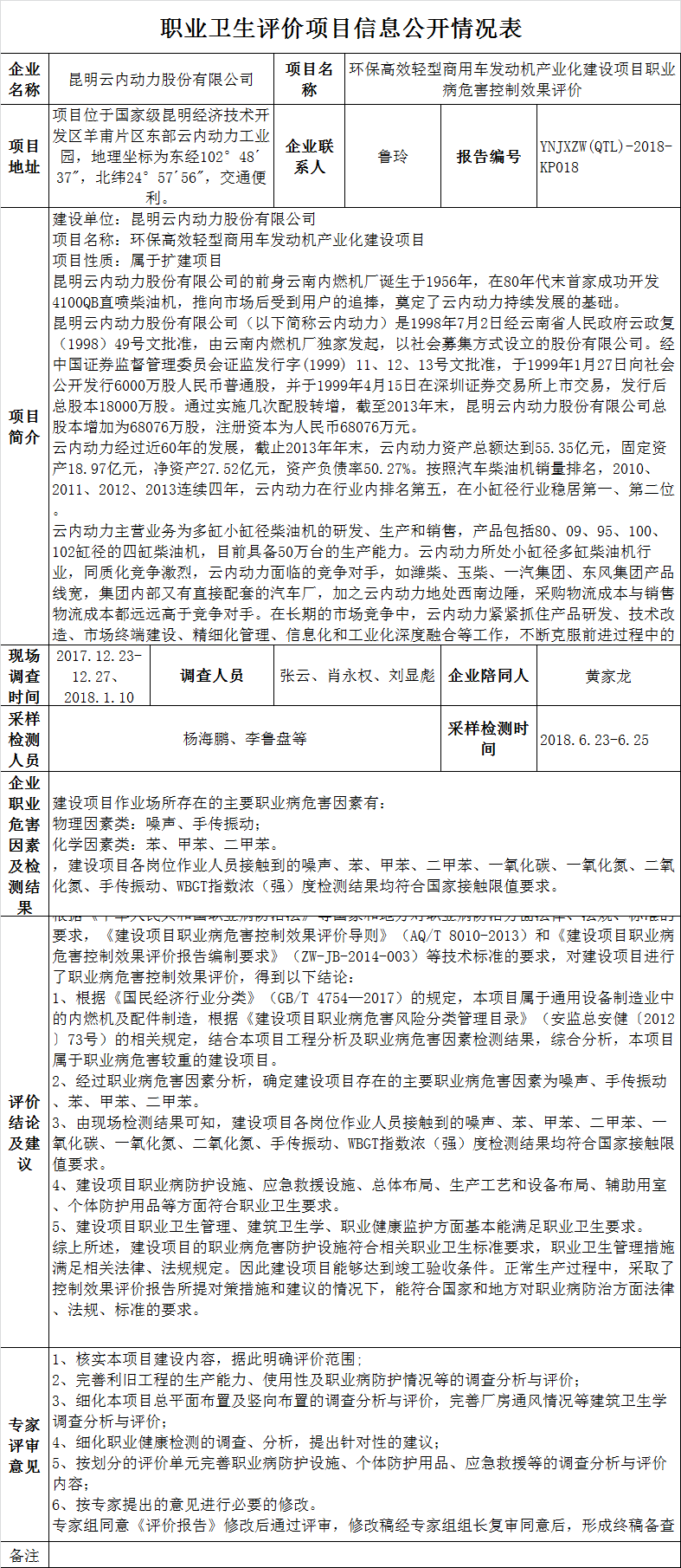 18-職業衛生(shēng)評價項目信息公開情況表YNJXZW(QTL)-2018-KP018