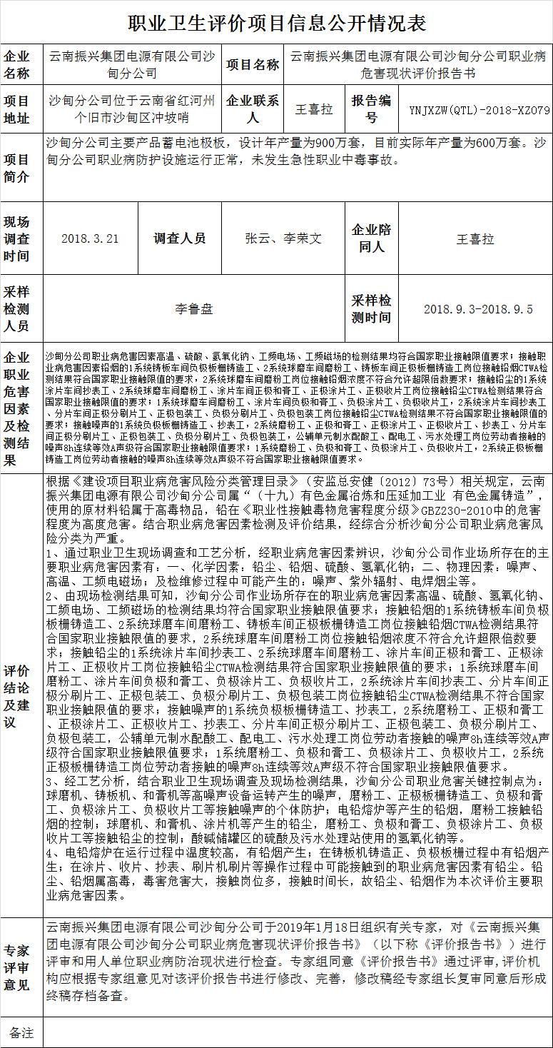 19-職業衛生(shēng)評價項目信息公開情況表YNJXZW(QTL)-2018-XZ079