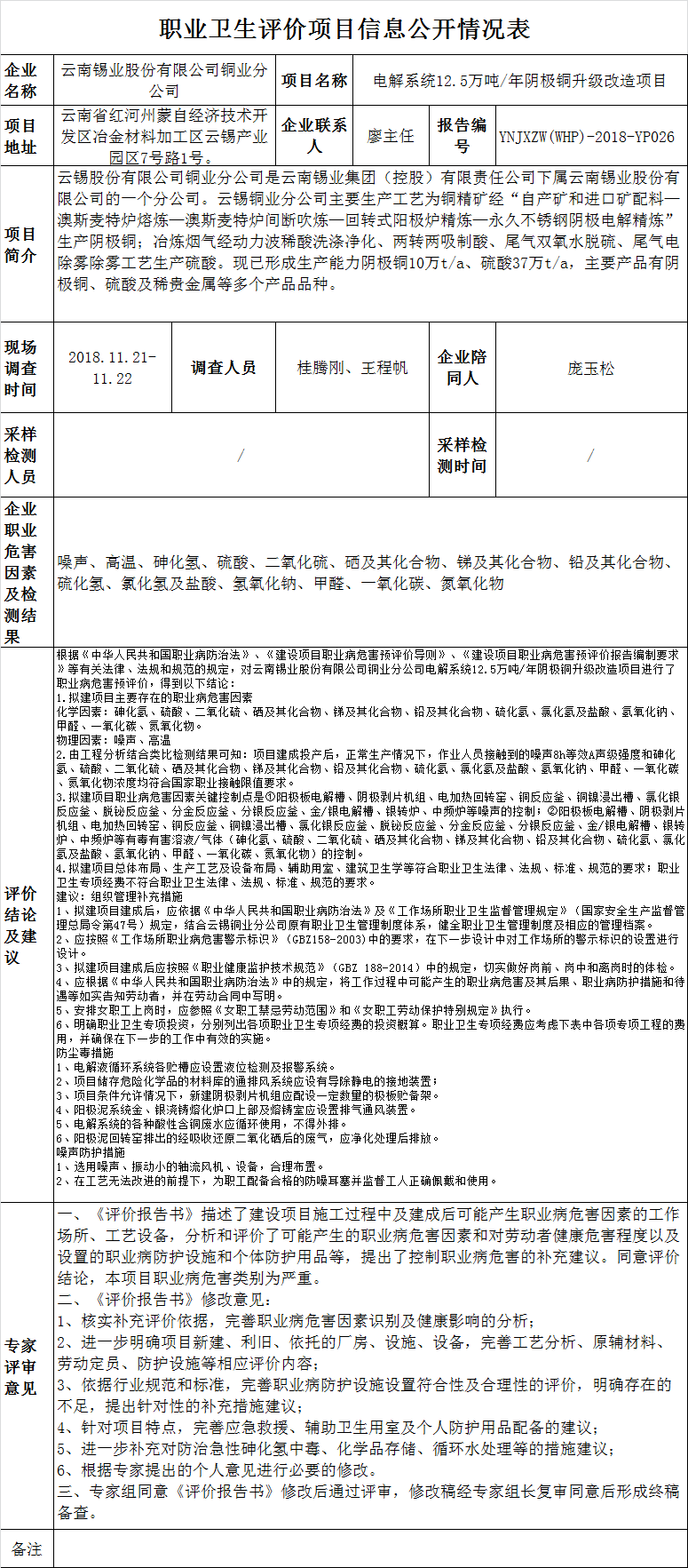 19-職業衛生(shēng)評價項目信息公開情況表YNJXZW(WHP)-2018-YP026
