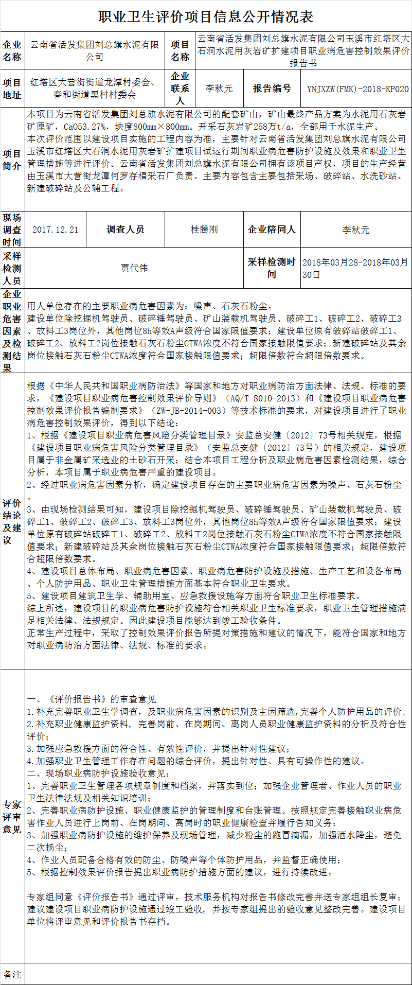 19-職業衛生(shēng)評價項目信息公開情況表YNJXZW(FMK)-2018-KP020