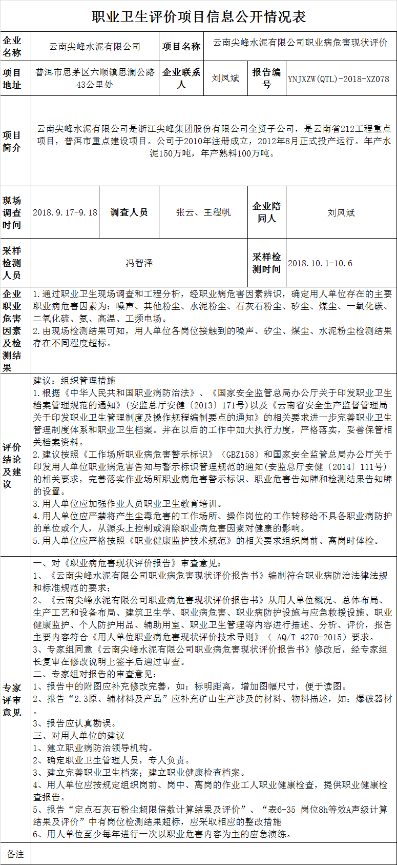 19-職業衛生(shēng)評價項目信息公開情況表YNJXZW(QTL)-2018-XZ078