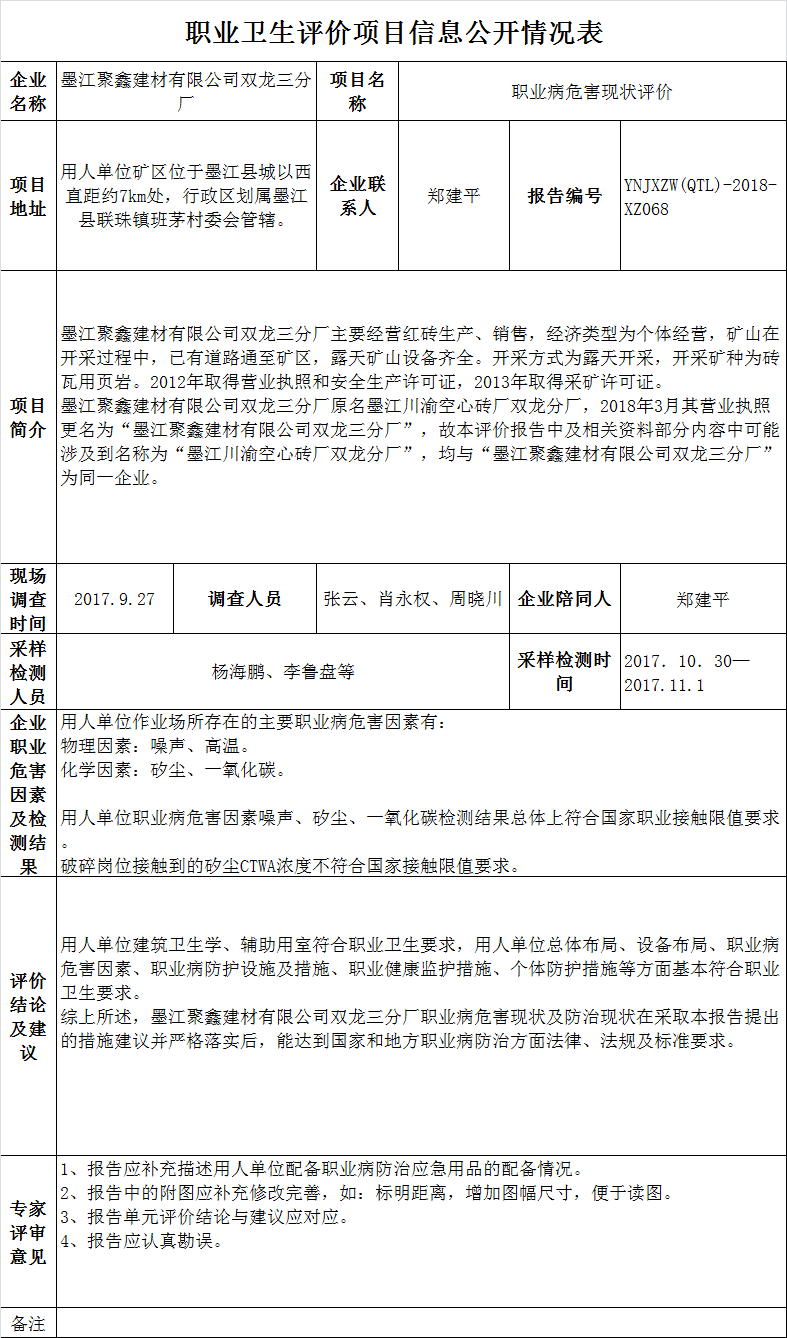19-職業衛生(shēng)評價項目信息公開情況表YNJXZW(QTL)-2018-XZ068