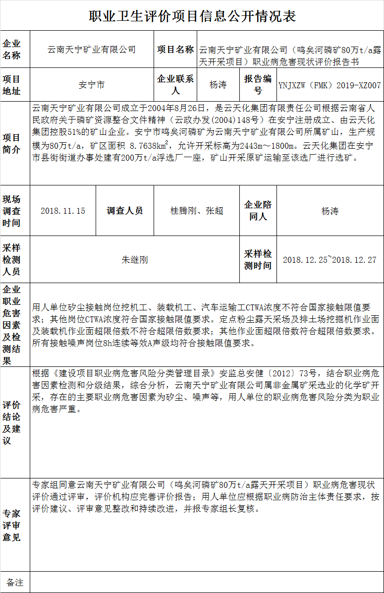 19-職業衛生(shēng)評價項目信息公開情況表YNJXZW(FMK)-2019-XZ007