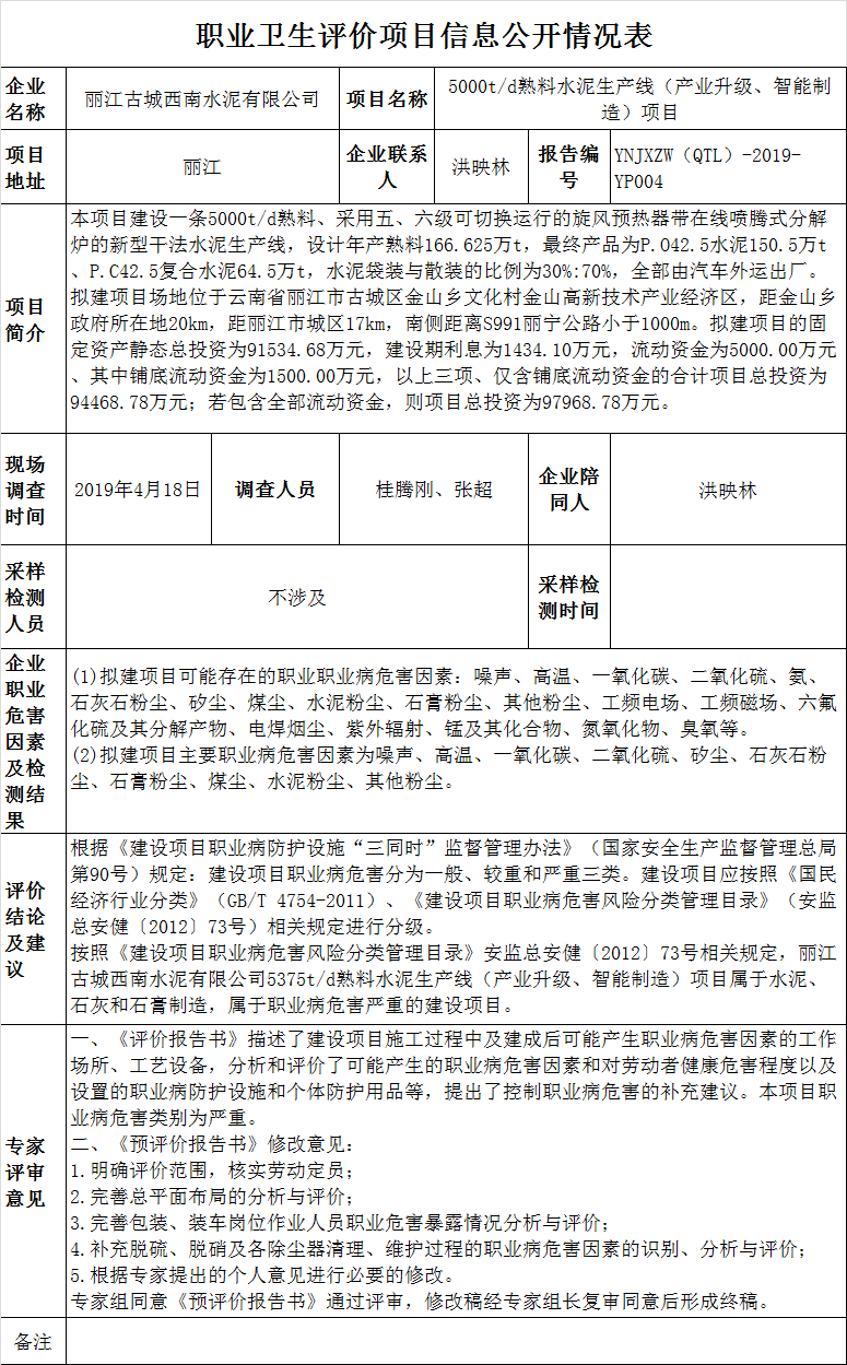 19-職業衛生(shēng)評價項目信息公開情況表YNJXZW(QTL)-2019-YP004