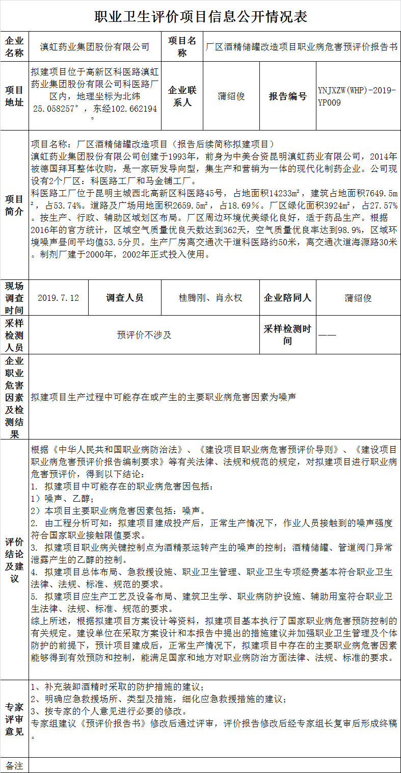 19-職業衛生(shēng)評價項目信息公開情況表YNJXZW(WHP)-2019-YP009