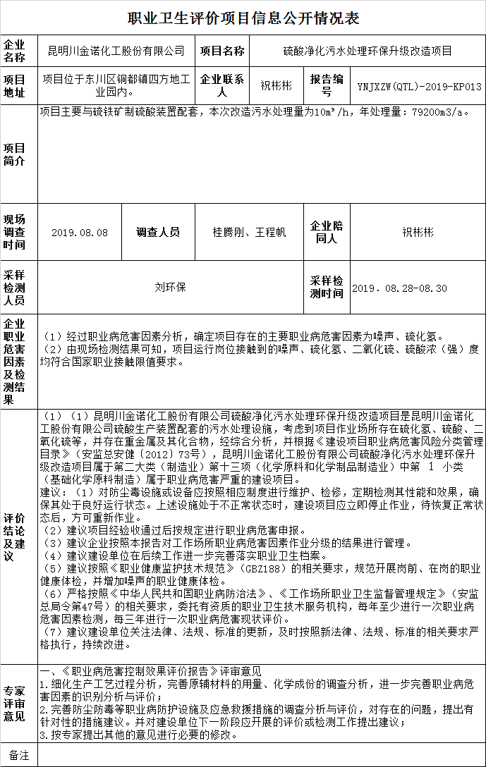 19-職業衛生(shēng)評價項目信息公開情況表YNJXZW(WHP)-2019-KP013