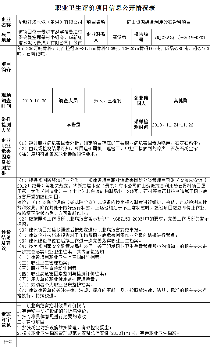 19-職業衛生(shēng)評價項目信息公開情況表YNJXZW(QTL)-2019-KP014
