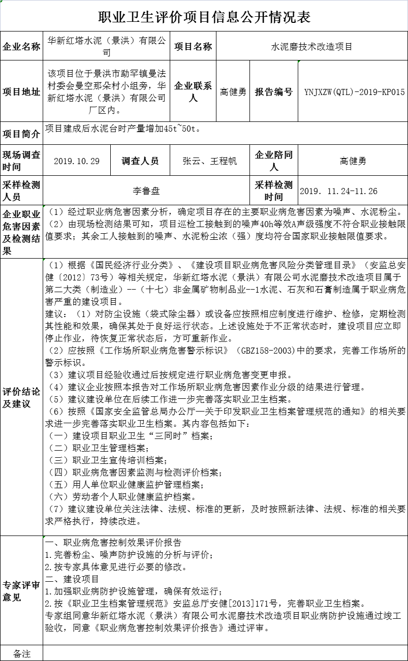 19-職業衛生(shēng)評價項目信息公開情況表-YNJXZW(QTL)-2019-KP015