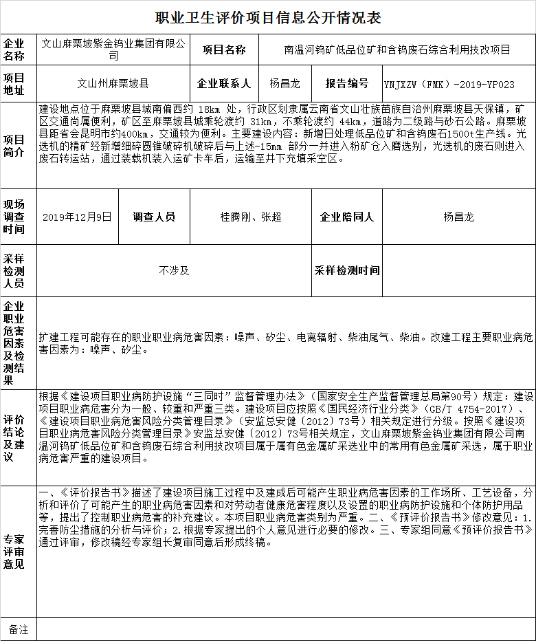 19-職業衛生(shēng)評價項目信息公開情況表YNJXZW(FMK)-2019-YP023