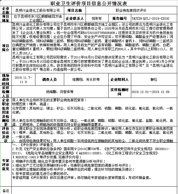 19-職業衛生(shēng)評價項目信息公開情況表-YNJXZW(QTL)-2019-XZ030