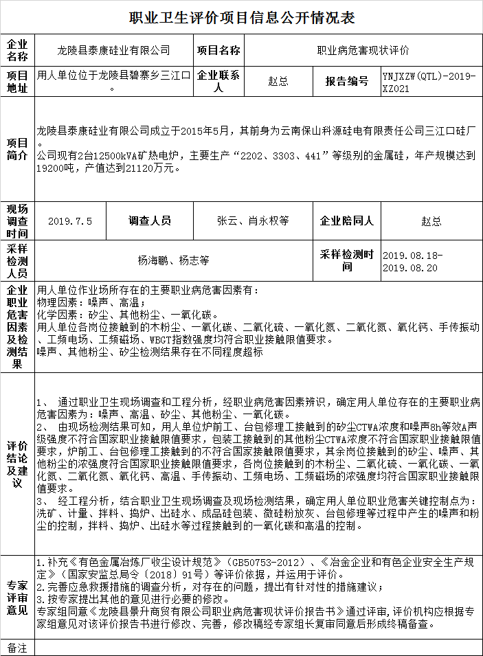 20-職業衛生(shēng)評價項目信息公開情況表YNJXZW(QTL)-2019-XZ021