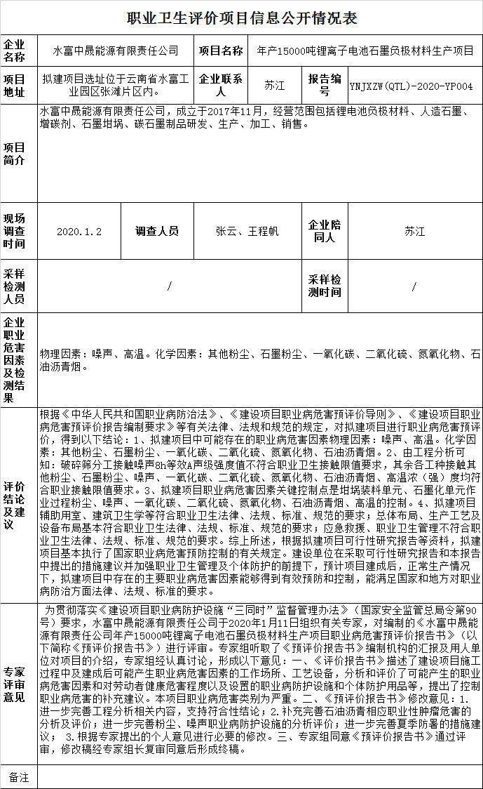 20-職業衛生(shēng)評價項目信息公開情況表YNJXZW(QTL)-2020-YP004