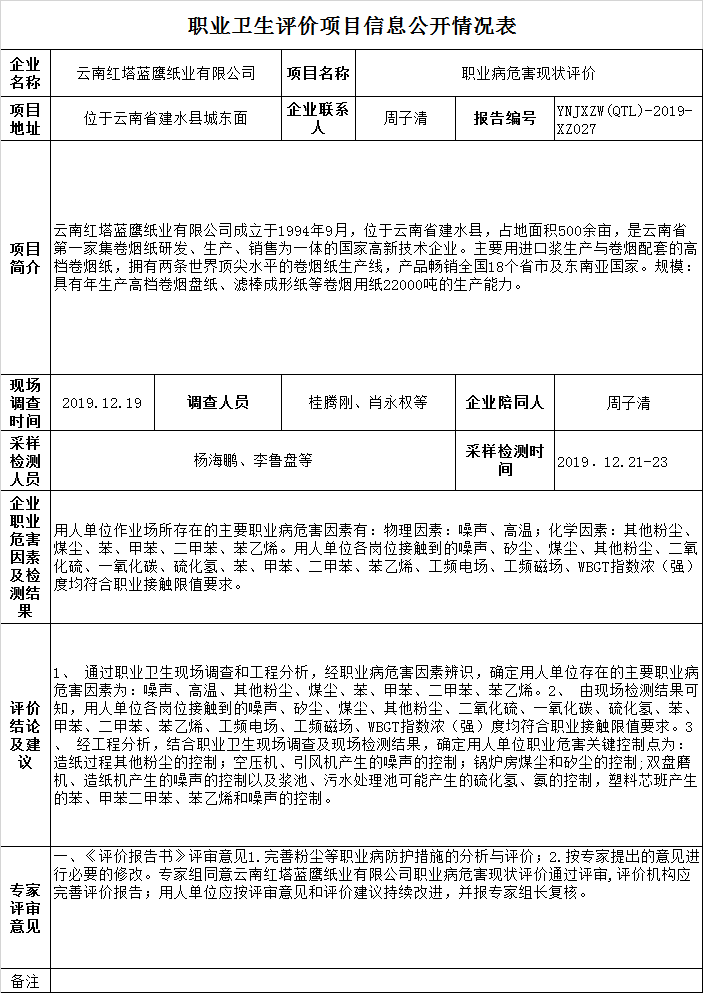 20-職業衛生(shēng)評價項目信息公開情況表YNJXZW(QTL)-2019-XZ027