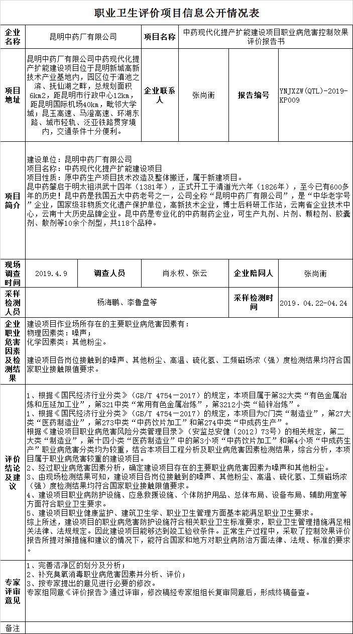 20-職業衛生(shēng)評價項目信息公開情況表YNJXZW(QTL)-2019-KP009