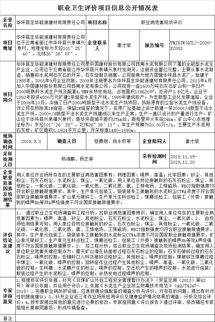20-職業衛生(shēng)評價項目信息公開情況表YNJXZW(QTL)-2020-XZ002