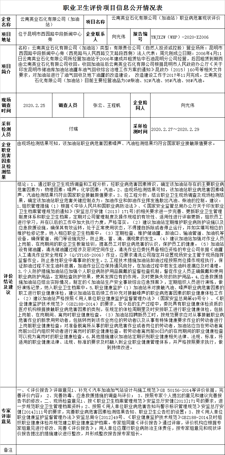 20-職業衛生(shēng)評價項目信息公開情況表YNJXZW(WHP)-2020-XZ006