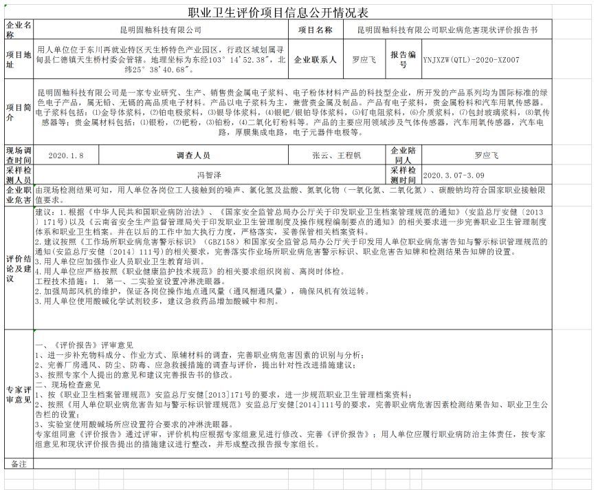 20-職業衛生(shēng)評價項目信息公開情況表YNJXZW(QTL)-2020-XZ007