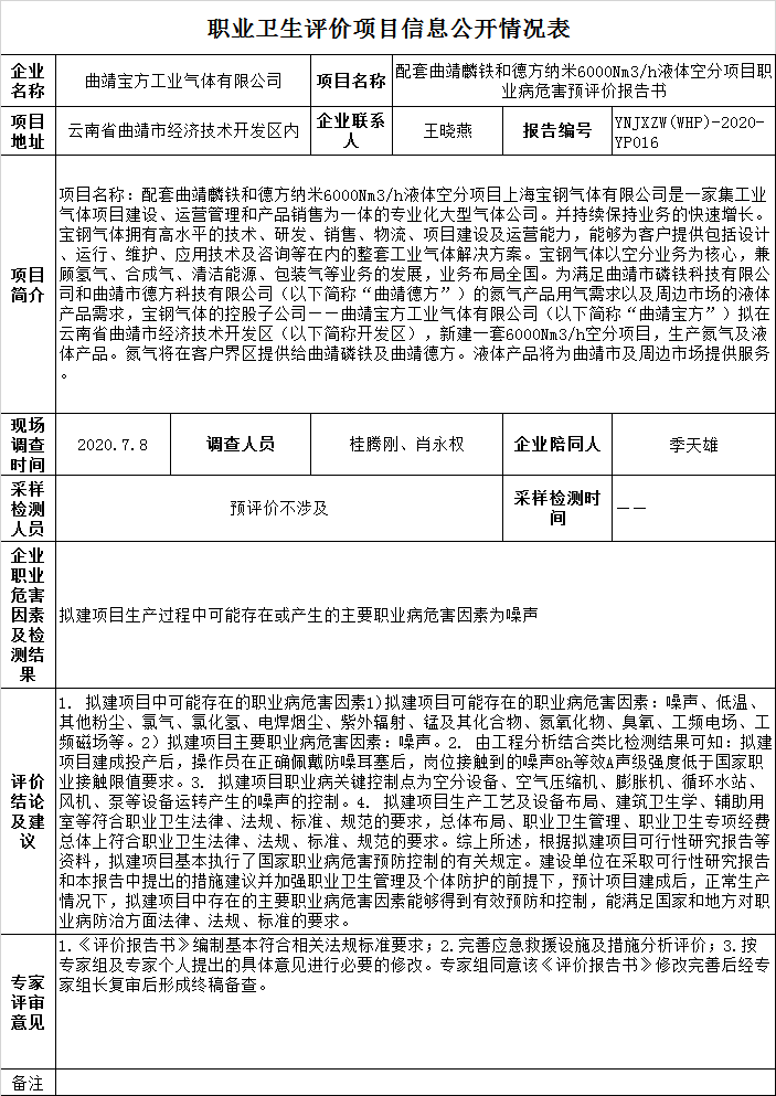 20-職業衛生(shēng)評價項目信息公開情況表YNJXZW(WHP)-2020-YP016