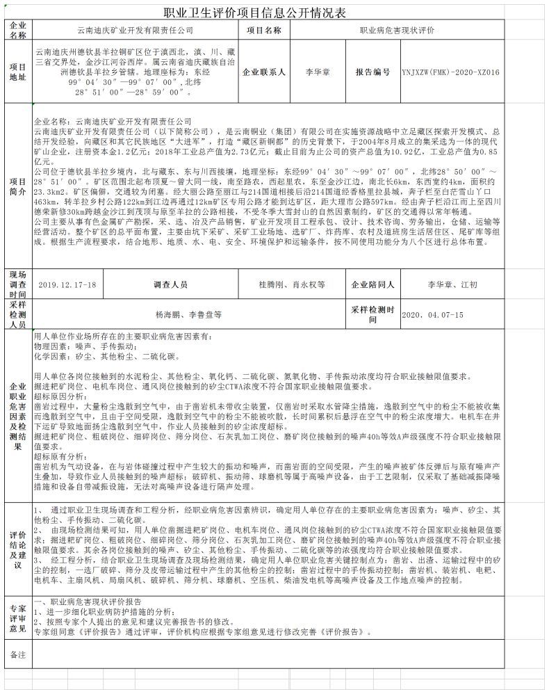 20-職業衛生(shēng)評價項目信息公開情況表YNJXZW(FMK)-2020-XZ016