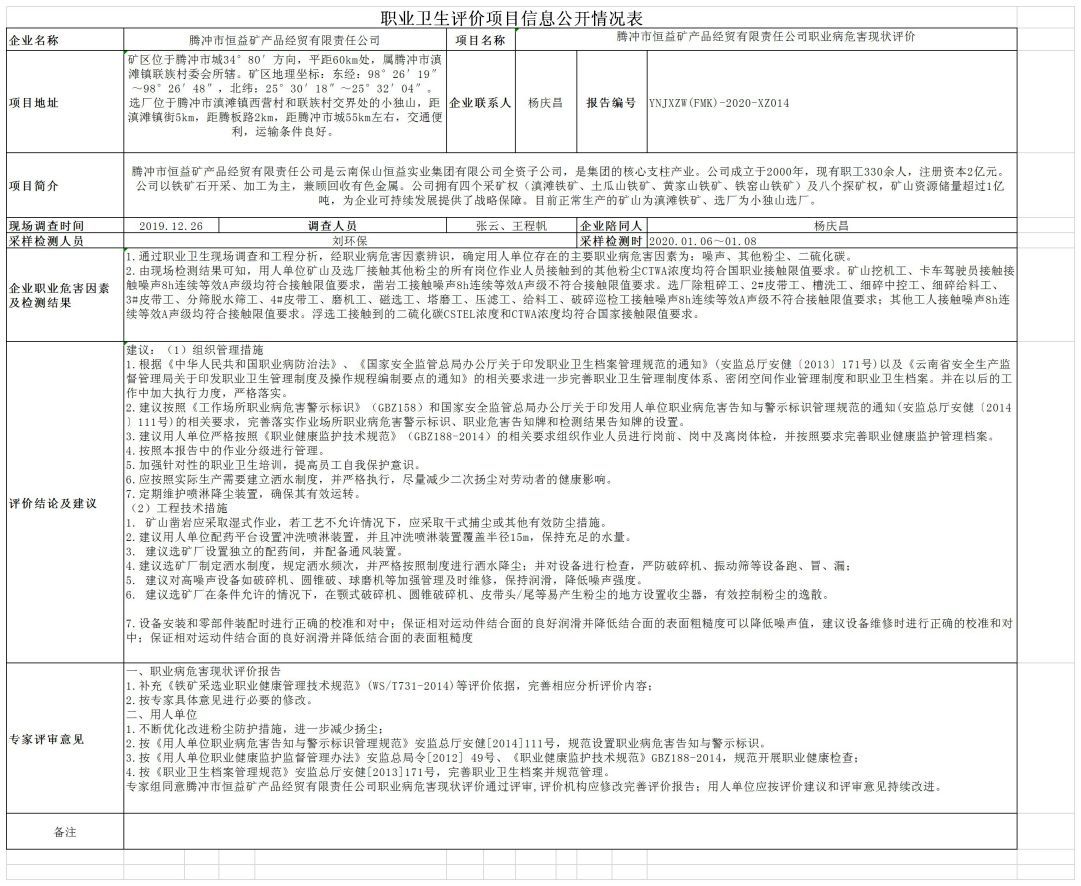 20-職業衛生(shēng)評價項目信息公開情況表YNJXZW(FMK)-2020-XZ014