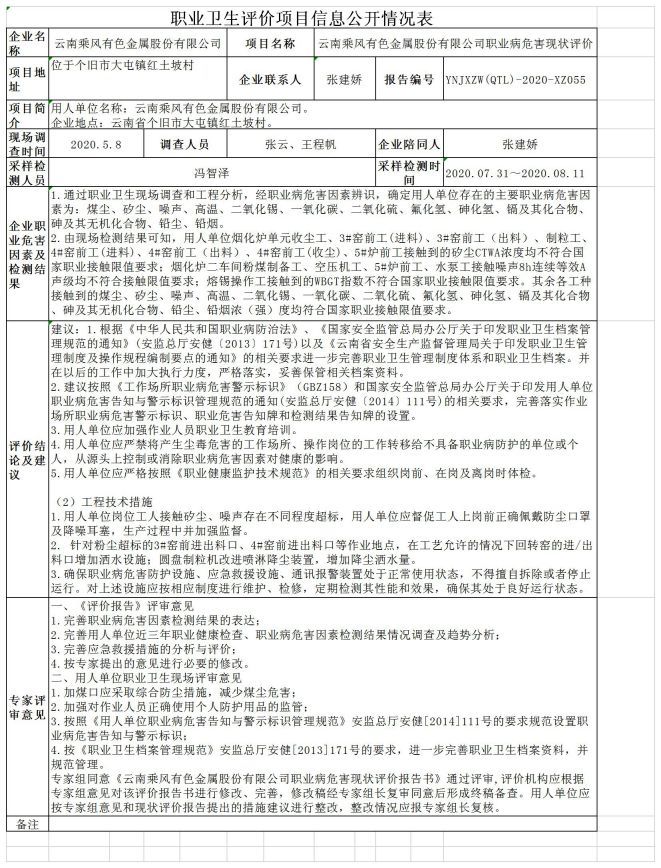 20-職業衛生(shēng)評價項目信息公開情況表YNJXZW(QTL)-2020-XZ055