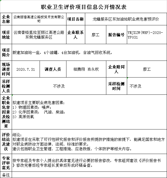 20-職業衛生(shēng)評價項目信息公開情況表YNJXZW(WHP)-2020-YP031
