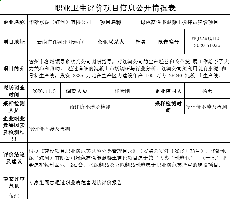 20-職業衛生(shēng)評價項目信息公開情況表-YNJXZW(QTL)-2020-YP036