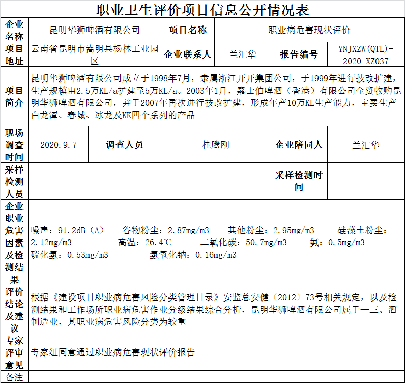 20-職業衛生(shēng)評價項目信息公開情況表-YNJXZW(QTL)-2020-XZ037