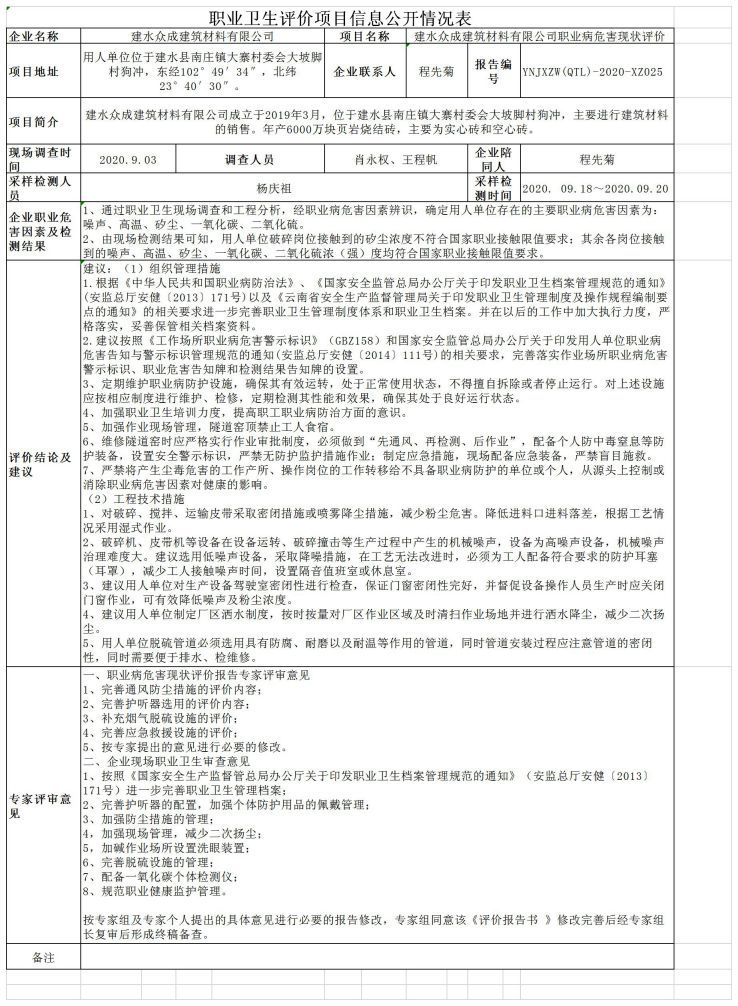 20-職業衛生(shēng)評價項目信息公開情況表YNJXZW(QTL)-2020-XZ025