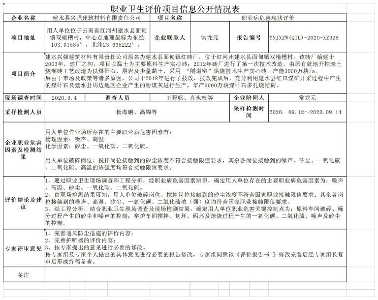20-職業衛生(shēng)評價項目信息公開情況表YNJXZW(QTL)-2020-XZ028