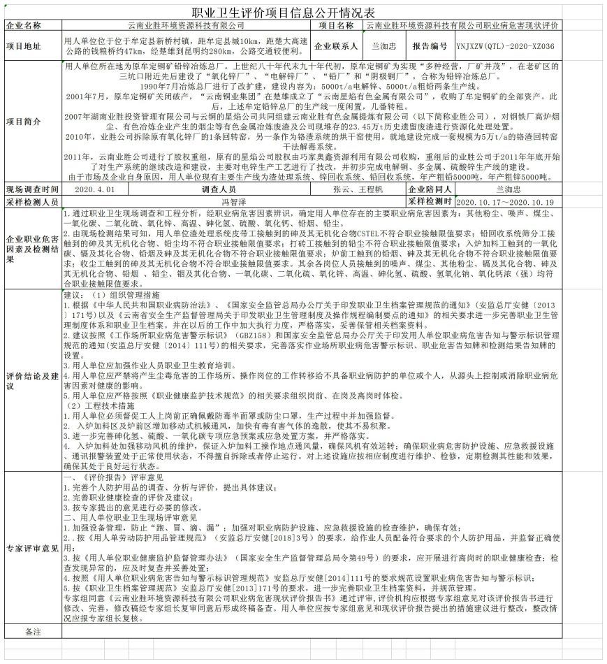 20-職業衛生(shēng)評價項目信息公開情況表YNJXZW(QTL)-2020-XZ036