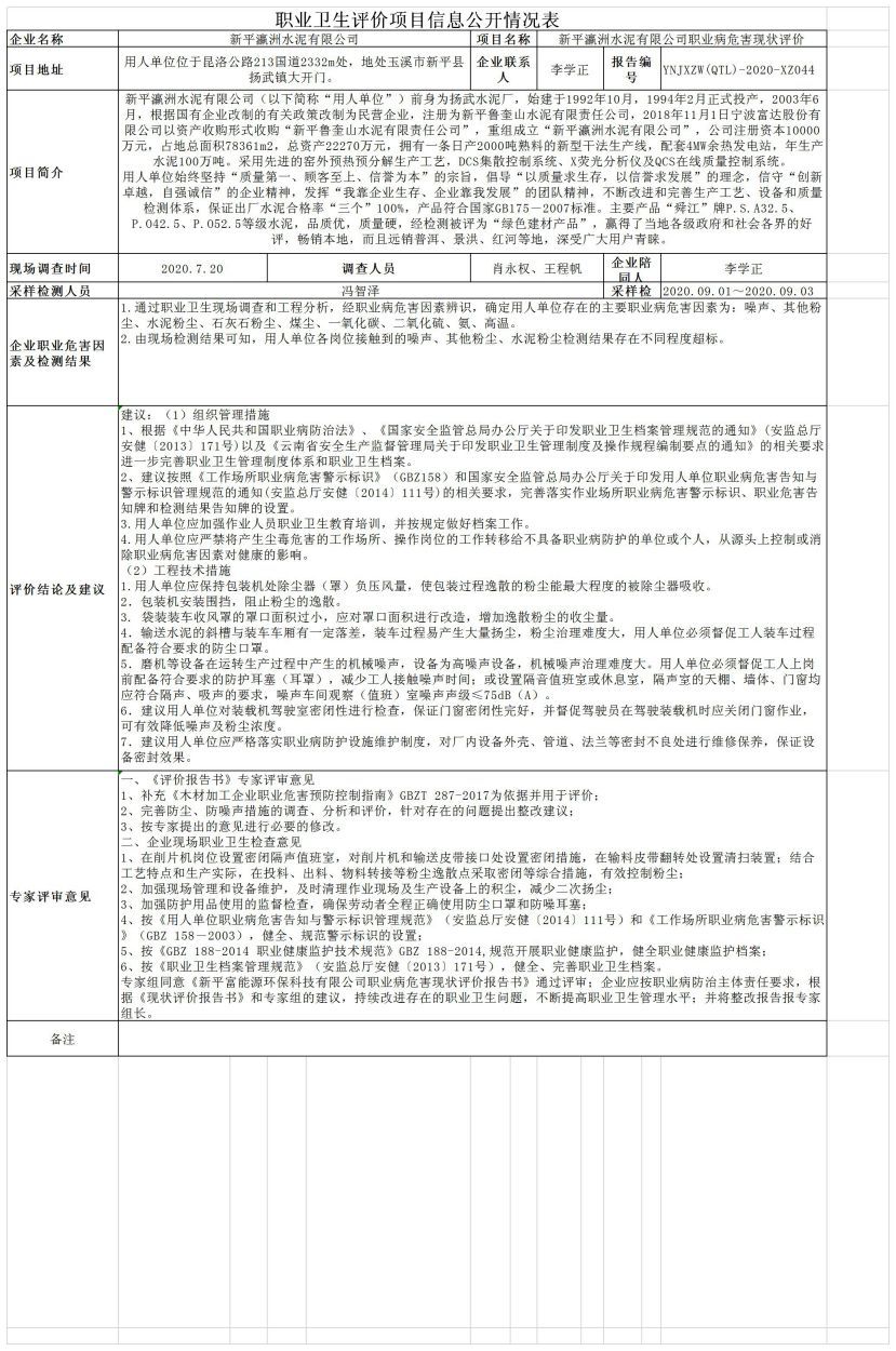 20-職業衛生(shēng)評價項目信息公開情況表YNJXZW(QTL)-2020-XZ044
