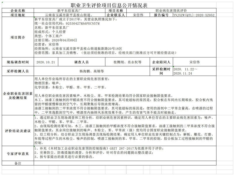 20-職業衛生(shēng)評價項目信息公開情況表YNJXZW(QTL)-2020-XZ052