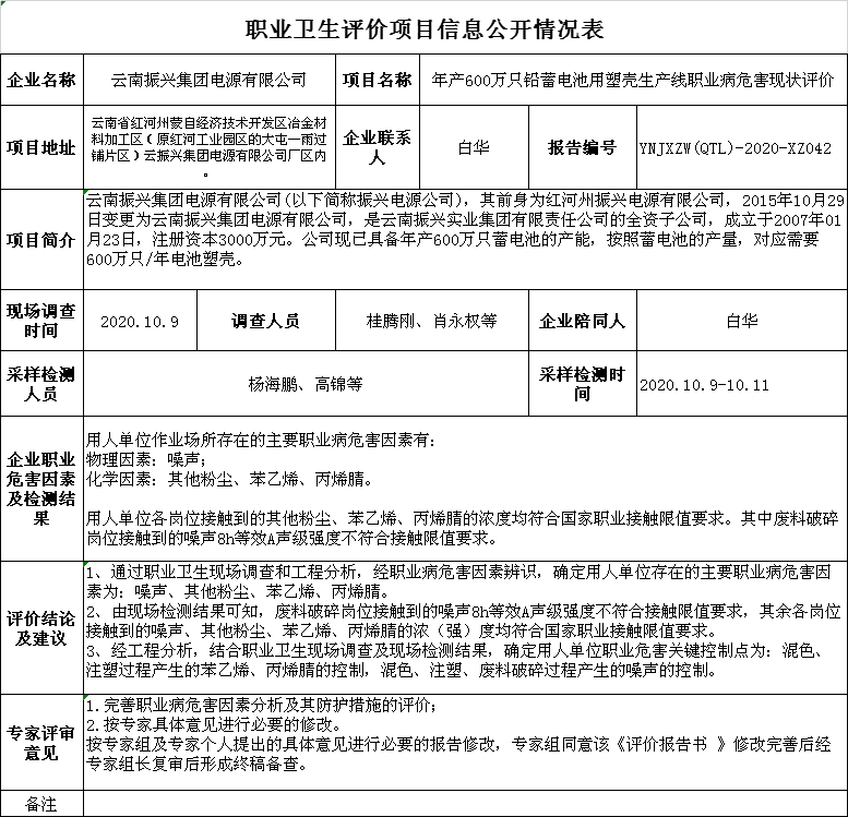 20-職業衛生(shēng)評價項目信息公開情況表-YNJXZW(QTL)-2020-XZ042
